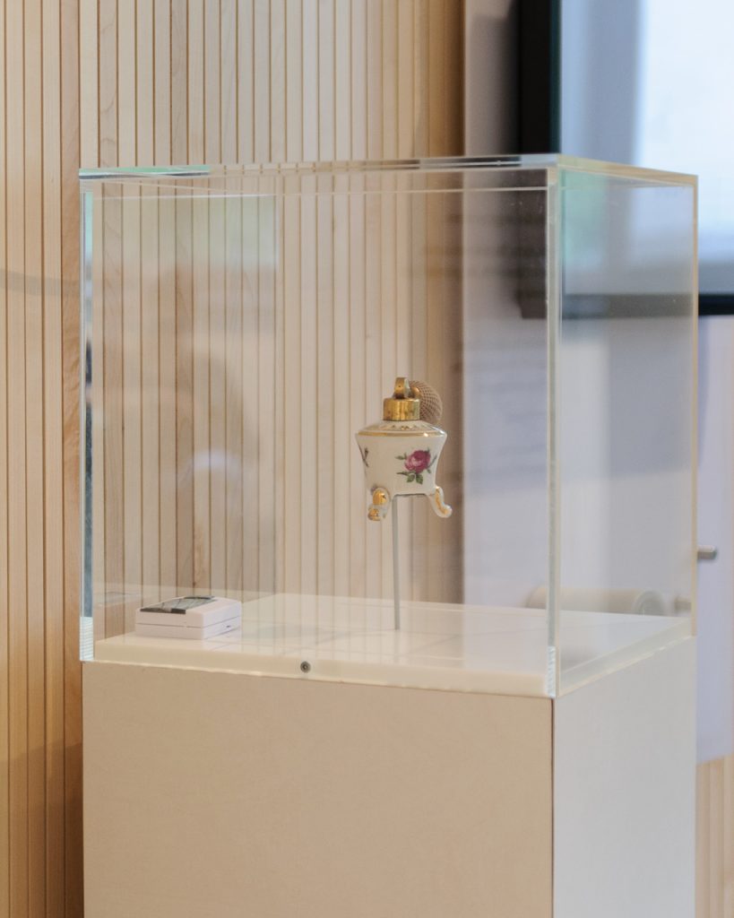 Die Präsentation erfolgt mit Bedacht sehr klassisch auf einem weißen Podest mit einer Glashaube, wodurch der Unterschied zu den anderen interaktiven und Hands-on-Exponaten sofort deutlich wird. Sie schafft ein Verständnis dafür, dass Museumsobjekte aufgrund ihrer Seltenheit, ihres kulturellen Wertes und ihrer Fragilität nur eingeschränkt zugänglich gemacht werden können, um dem konservatorischen Auftrag von Museen genüge zu tun.